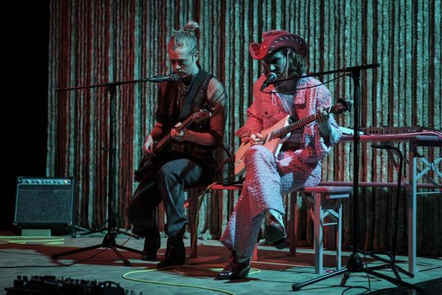 Anyone, who still thinks cowboys are sexy? In the night we became REAL men. Or heros? We will cry you under the table and one thing is certain: the fries at the pool have more fat than my butt. Someone had to win the mating dance. And lose the antler battle. Of course, we can be a band just the two of us. Die Nacht in der wir Männer wurden (The Night We Became Men) is a “short” physical theatre piece with night life vibes, drag and original live music. It deals with and makes an attempt at positiv forms of modern masculinity. From a non-binary and trans masculine perspective the (i)dentityteam asks: what is masculinity or maleness actually and how do we want to be masculine? To answer this the team makes use of a wide range of artistic elements such as movement, choreography, music, stand up comedy, acting and of course drag! What awaits you is a humorous, artistic and raw deep dive into the open pool of identity building, puberty, coming-outs and transition. There are songs about emotions and masculine roles in relationships; there are cowboys, swimwear styles and mating dances; but first and foremost the important question is asked: is it masculine now?