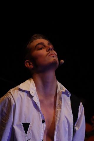 Elina Brams Ritzau tanzt, singt, spielt Klavier und performt virtuos eine Bühnenfigur, die im Verlauf des Stücks zwischen den Geschlechtern changiert. Das Publikum erlebt die inneren und äußeren Kämpfe einer gebrochenen Persönlichkeit.