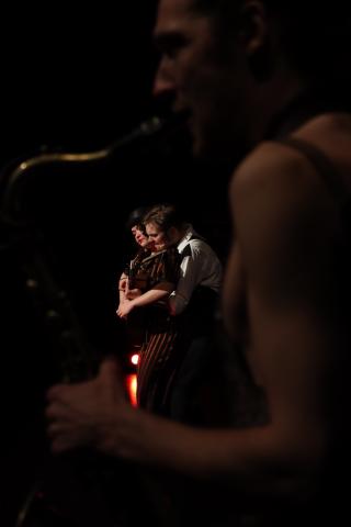 Bruna Cabral und Jakob Jentgens bauen dazu mit elektronischem und akustischem Schlagzeug, Vibraphon, Gitarre, Saxophon, Bassklarinette und Live-Elektronik einen facettenreichen Klangkosmos, orchestral und intim, wild und zart, abstrakt und melodiös. Mit ihren Instrumenten performen sie nicht nur musikalisch, sondern auch szenisch und erzählen gemeinsam mit Elina Brams Ritzau die Geschichte der Beziehungen dieser drei Figuren. Drumsticks werden geworfen, es wird auf dem Klavier getanzt, getrunken und geschrien. Es wird wild, irritierend und unterhaltsam.